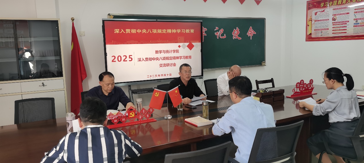 4月10日,数学与统计公司党委领导班子成员在数统楼407开展了深入贯彻中央八项规定精神学习教育读书班交流研讨会。此次研讨旨在进一步加强党员干部作风建设,确保中央八项规定精神得到有效落实。