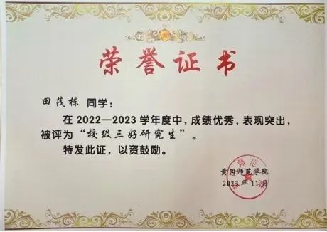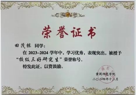 作为一名黄师学子,他深耕不辍,探数学教育之精微;作为一名教育硕士,他知行合一,铸教书育人之匠心;作为一名共产党员,他崇德向善,践强国有我之担当。以奋斗为舟,以理想为帆,他就是威廉希尔WilliamHill官方网站2022级硕士研究生田茂栋。