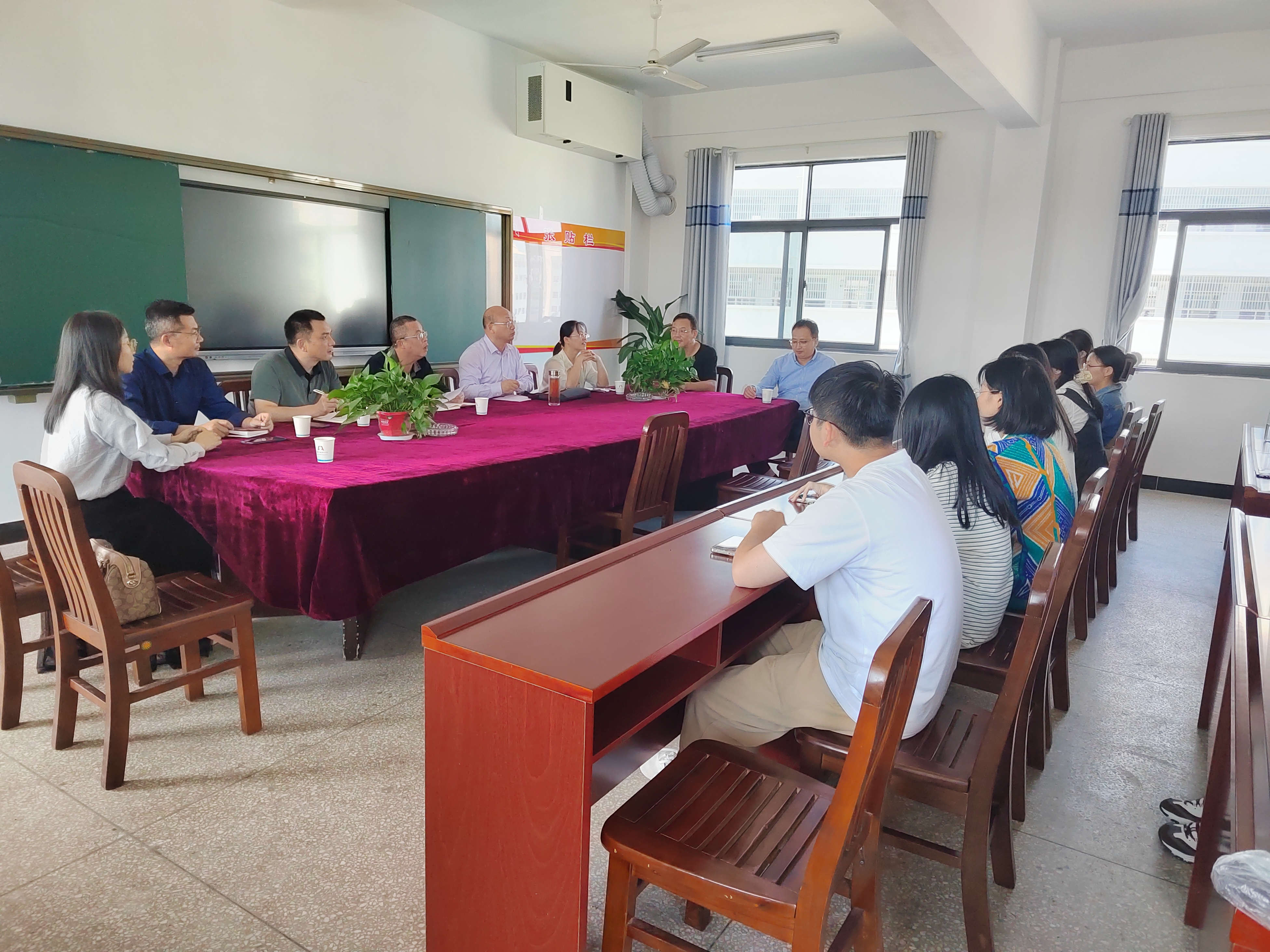 在黄梅八角亭中学,陈书记一行受到八角亭中学校领导的热情接待,详细了解了实习生的学习和生活情况,并与八角亭中学领导、指导老师、实习员工进行了座谈。