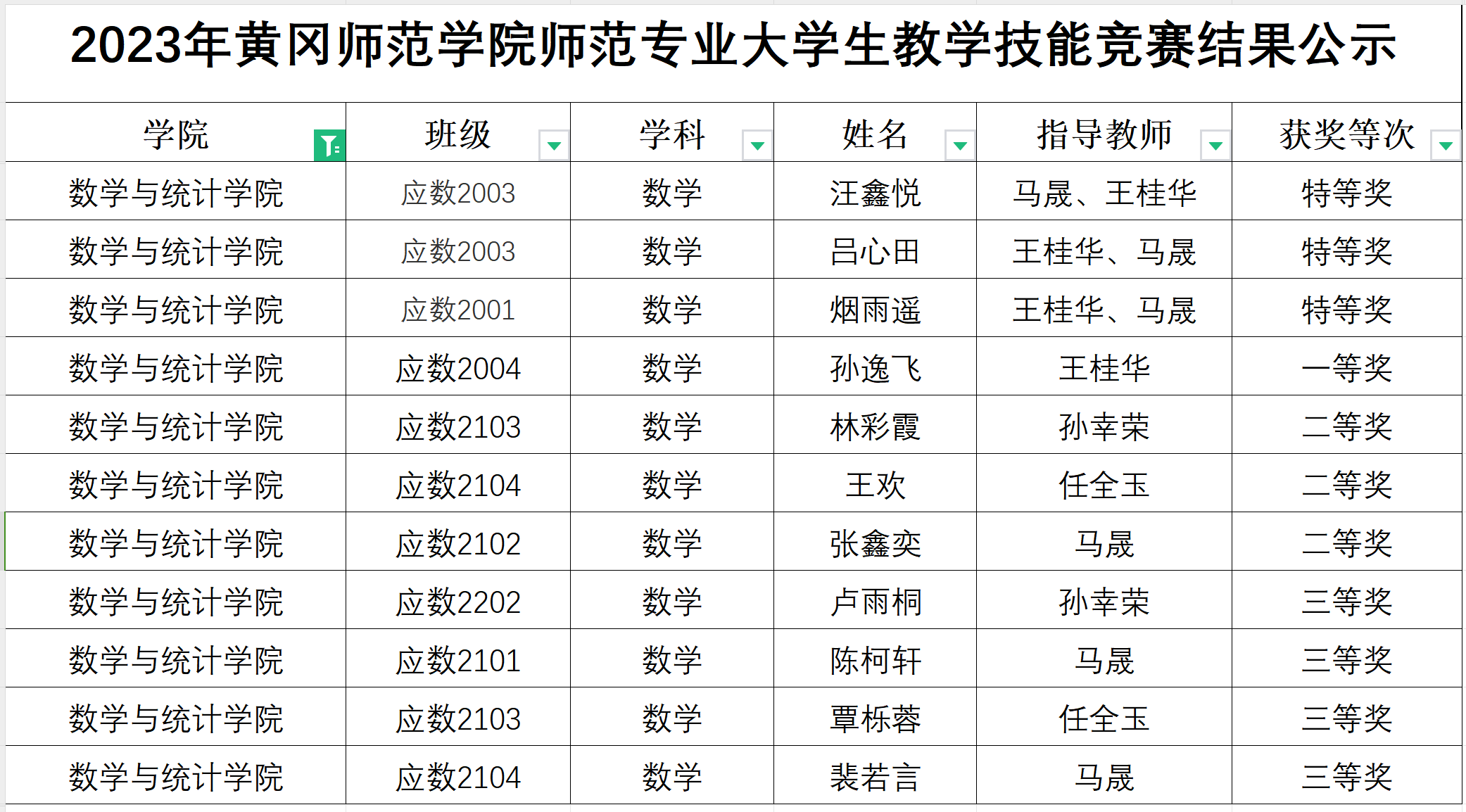 附:教学技能竞赛结果