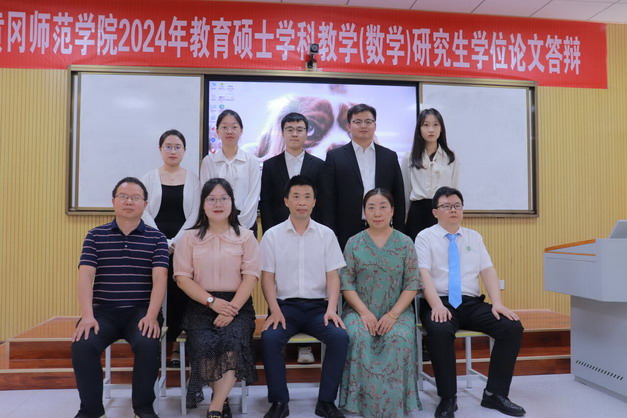 2024519日,数统公司2024年教育硕士学科教学(数学)研究生学位论文答辩会在数统楼举行。经前期严格规范的答辩资格审查,共有37名研究生参加了本次学位论文答辩会。本次答辩分六场进行,由杨族桥教授等6位教授担任答辩主席,邀请到黄冈市教育科学研究院丁明忠老师等6位基础数学教育一线高级数学教师担任答辩评委。